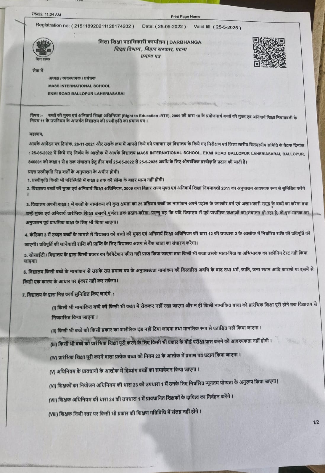 Mass International School is a premier CBSE affiliated institution in Darbhanga,